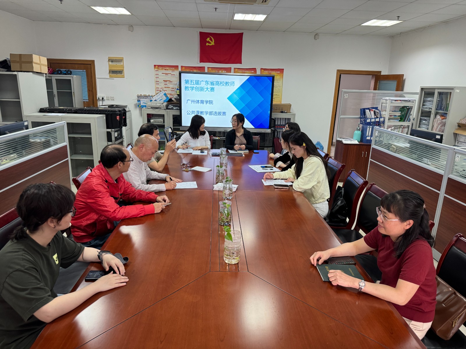 3月27日,第五届广东省高校教师教学创新大赛校级选拔推荐工作在公共课教学部顺利举行。本次选拔赛由公共课教学部副主任石洁琦组织,评审专家陈文玲、陈建生、孙纲、吴炳强、许华琼、许邵明、谢晓虹、黎劲、苏雯共同参与评审。经过严格评审,最终四支优秀团队脱颖而出,晋级复赛,争夺代表部门参加校级比赛的资格。